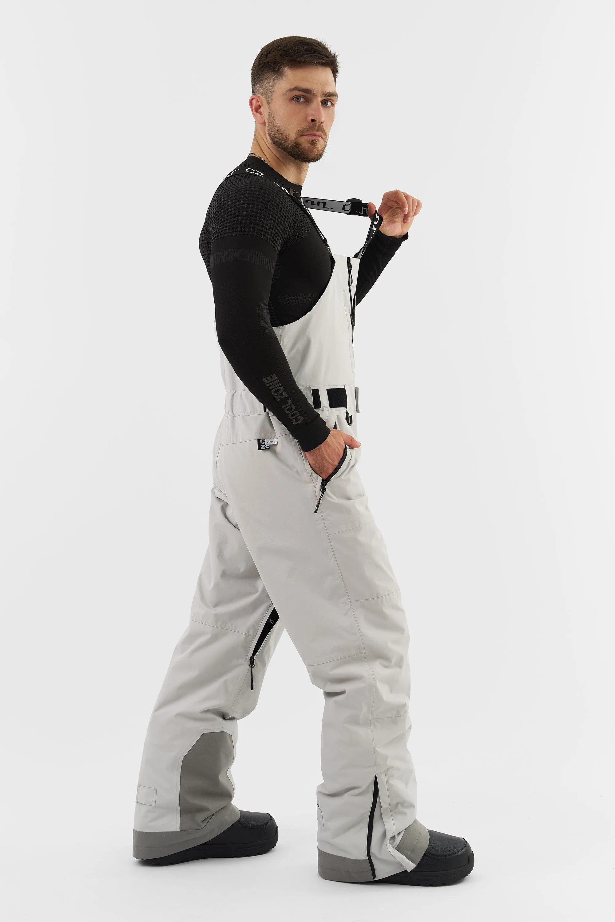 Полукомбинезон обеспечивает дополнительную защиту от холода и ветра, надежно закрывая спину и грудь.