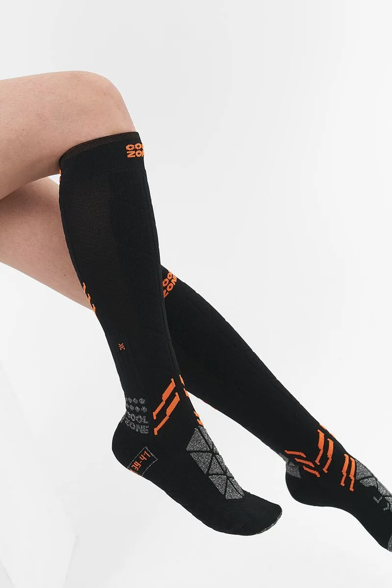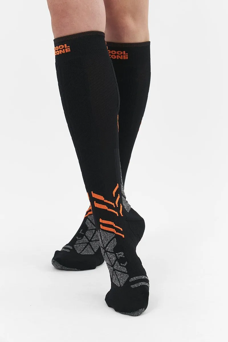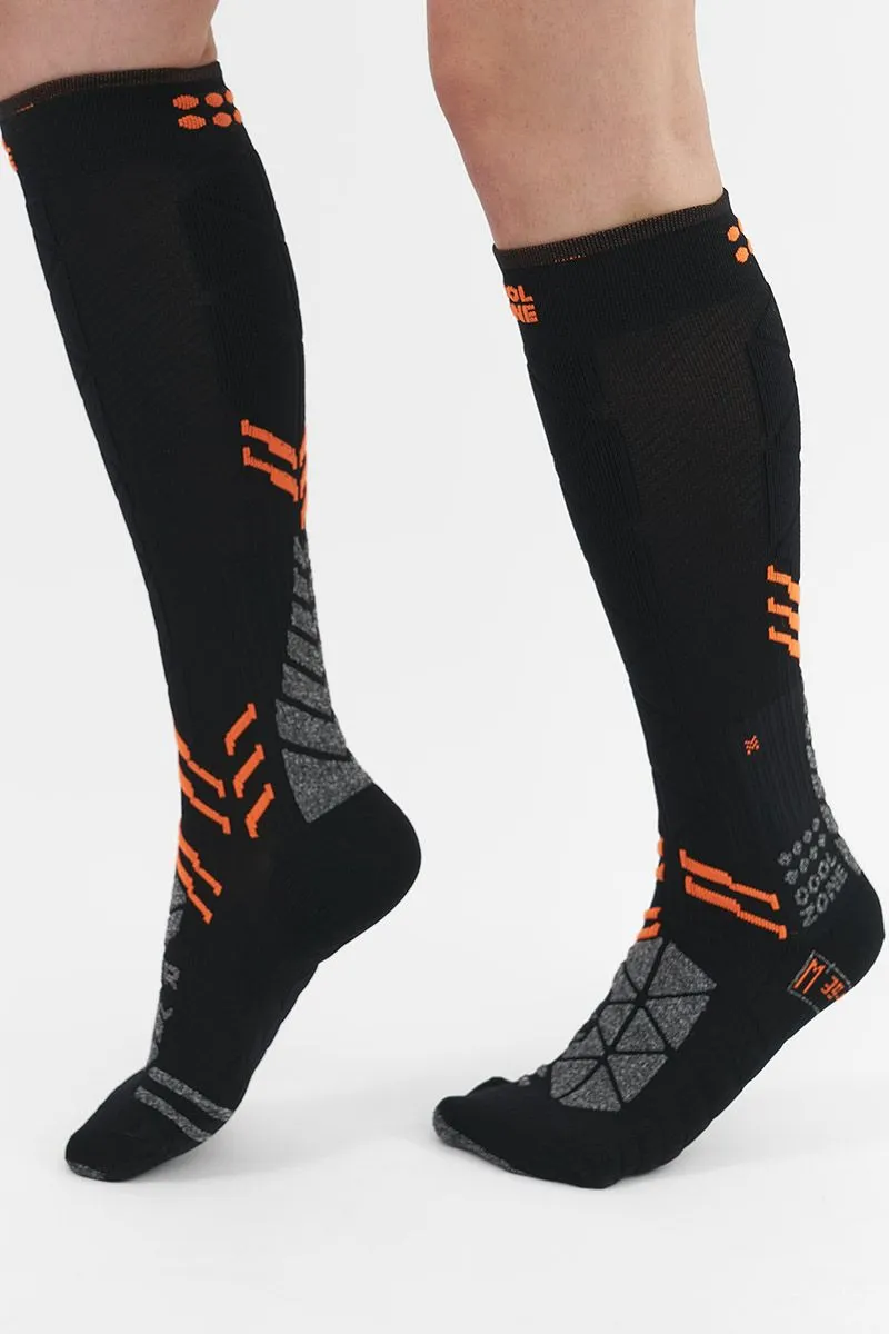 Структура носка гарантирует комфорт в условиях максимальной подвижности. Нити Polycolon сохраняют тепло, эластан марок Lycra и Spandex поддерживают голеностопный сустав и икроножные мышцы. Отведение влаги и антибактериальная пропитка обеспечивают здоровый климат внутри ботинка.