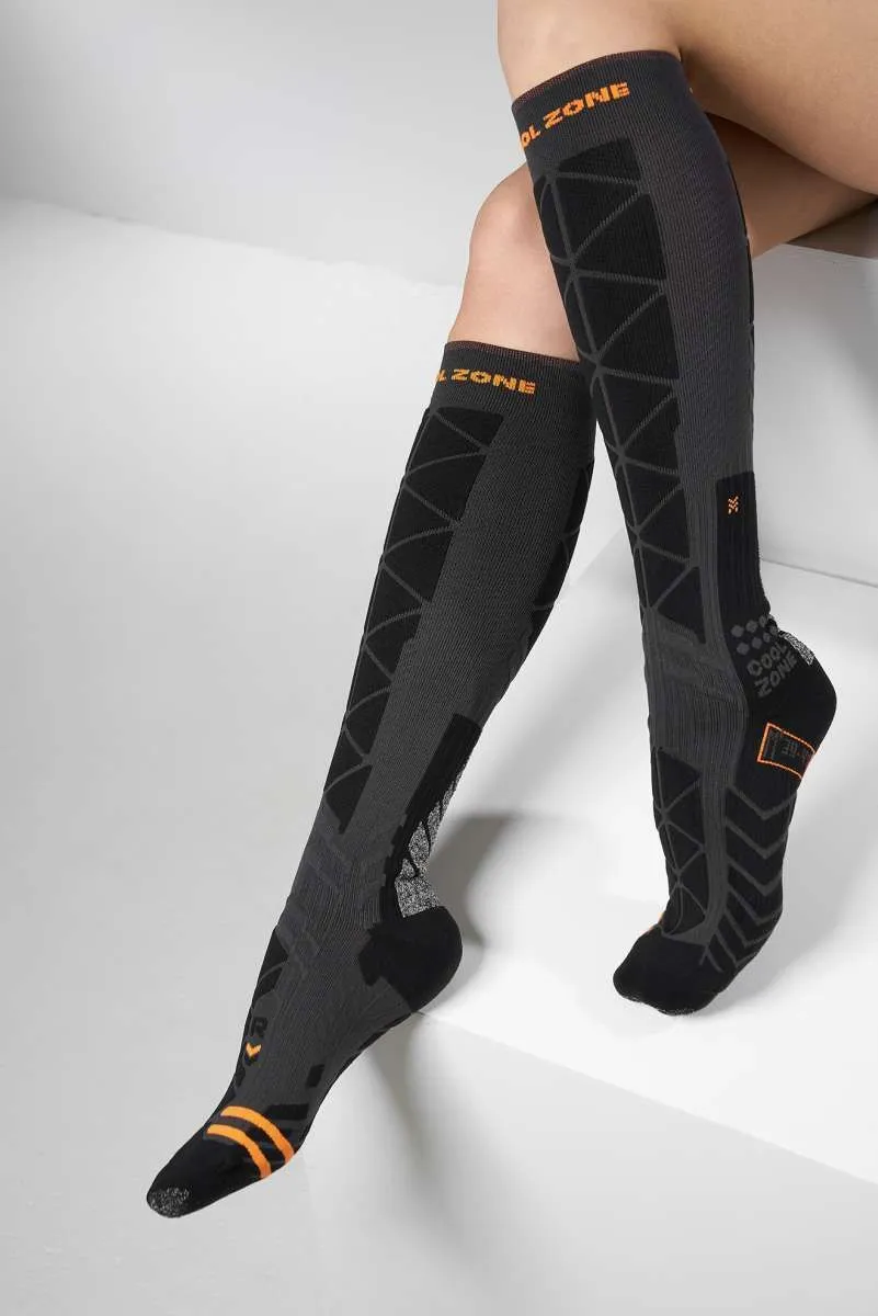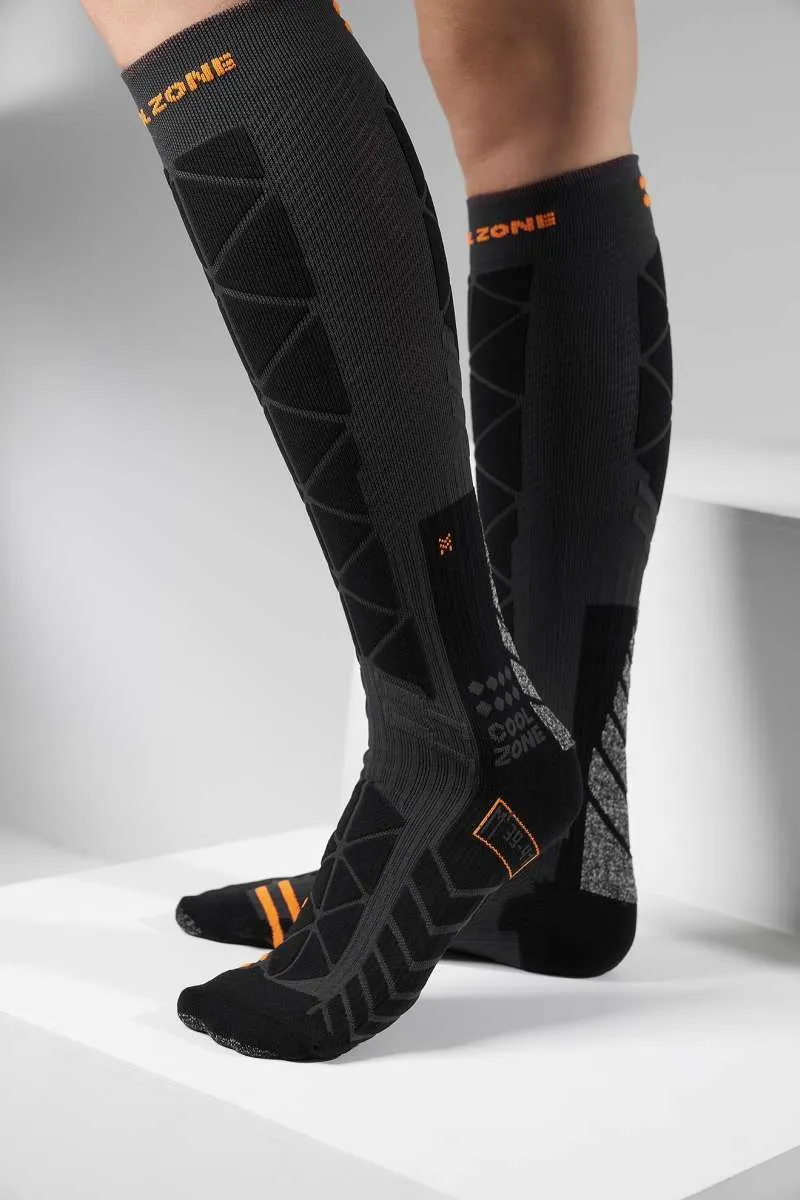 Структура носка гарантирует комфорт в условиях максимальной подвижности. Нити Polycolon сохраняют тепло, эластан марок Lycra и Spandex поддерживают голеностопный сустав и икроножные мышцы. Отведение влаги и антибактериальная пропитка обеспечивают здоровый климат внутри ботинка.